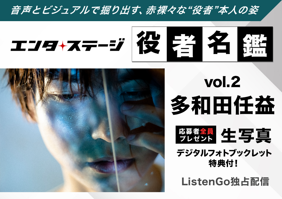 演劇情報サイト「エンタステージ」が、ドワンゴが運営するオーディオブック配信サービス「ListenGo(リスンゴ)」にて展開する「#エンタステージ役者名鑑」。第二回には、多和田任益さん(梅棒)にご登場いただきました。2022年3月31日(木)12:00より配信開始です。